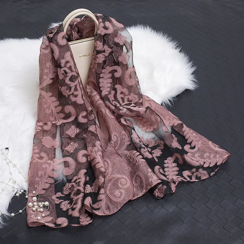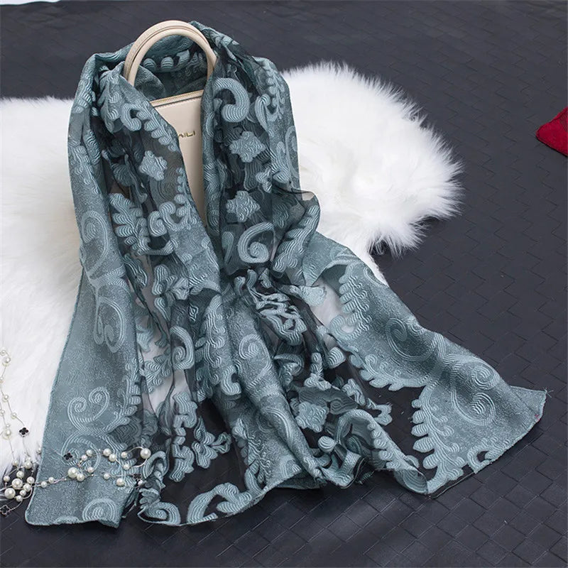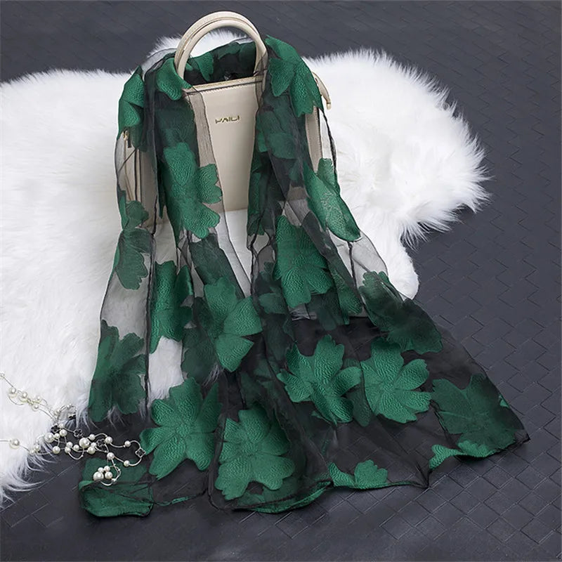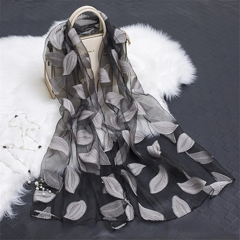 Pañuelo ultraligero de tejido organza con acabado sedoso, ideal para looks playeros y urbanos. Su diseño semitransparente y tamaño generoso (180x90cm) ofrece múltiples formas de uso con elegancia.