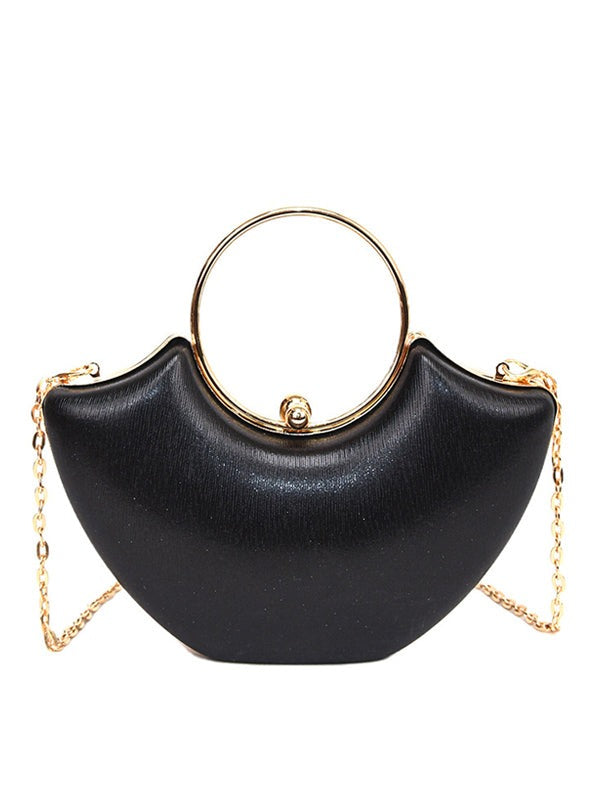 Un bolso que brilla con luz propia. Este exclusivo bolso de mano dorado con acabado metálico y diseño en forma de media luna es perfecto para elevar cualquier look de noche o evento especial. Su elegante asa circular y cadena dorada desmontable lo hacen versátil para llevarlo en la mano o al hombro.