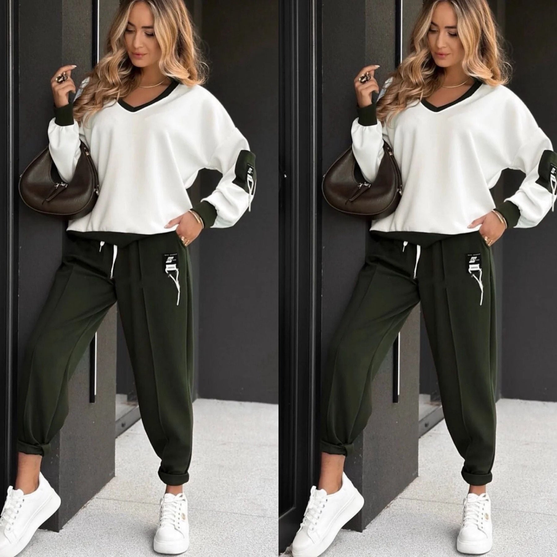 Este conjunto con sudadera de capucha destaca por su contraste entre el blanco y el marrón oscuro 🤎🤍, un dúo que renueva tu estilo al instante. Una versión moderna del clásico contraste de colores que rompe con la monotonía y aporta un efecto visual dinámico y llamativo.
