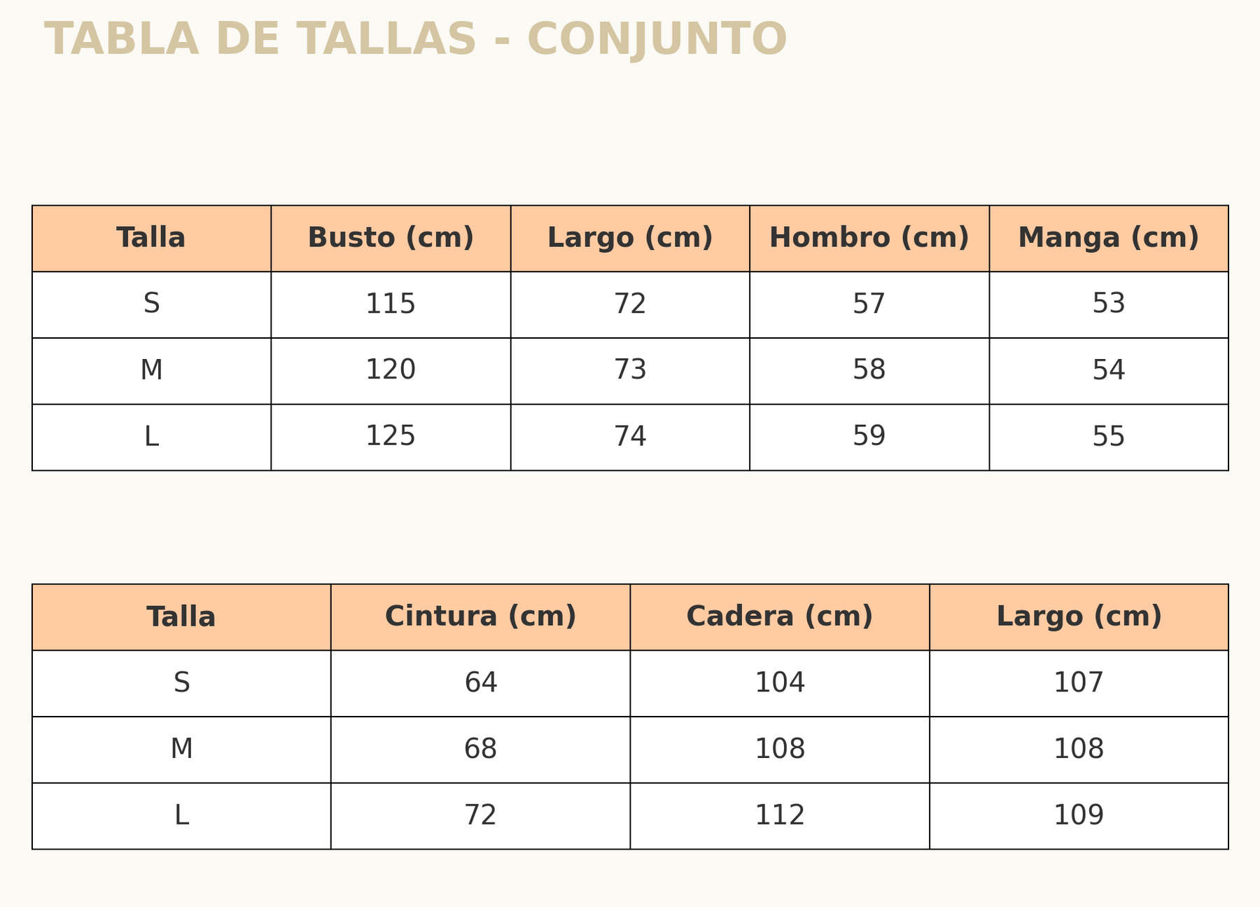 Tabla de tallas: