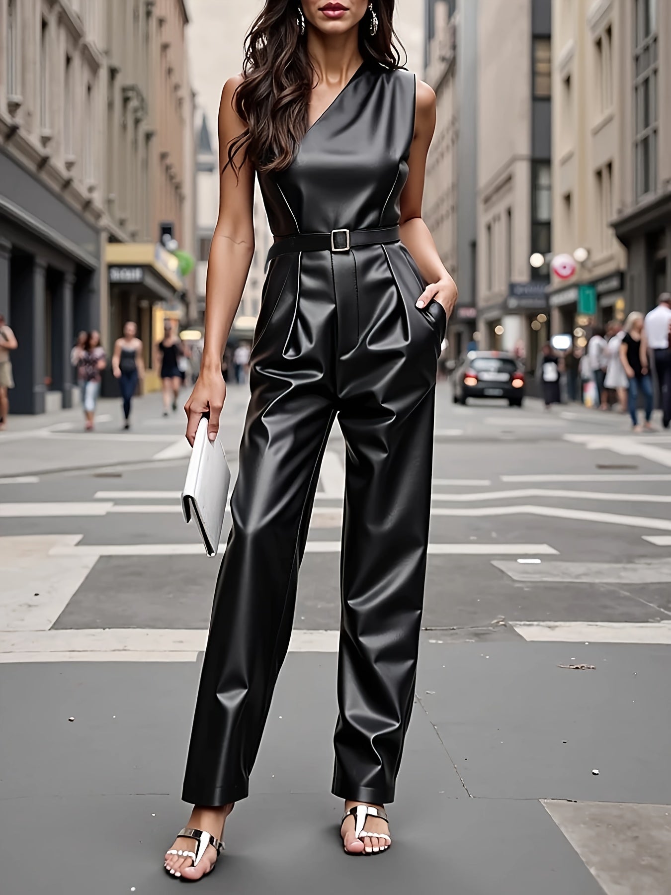 Su diseño minimalista y depurado realza la silueta con naturalidad, fusionando comodidad y estilo en una sola prenda. Perfecto tanto para eventos formales como para una salida urbana con carácter, este mono encarna la esencia de la mujer moderna: segura, distinguida y con un toque audaz.