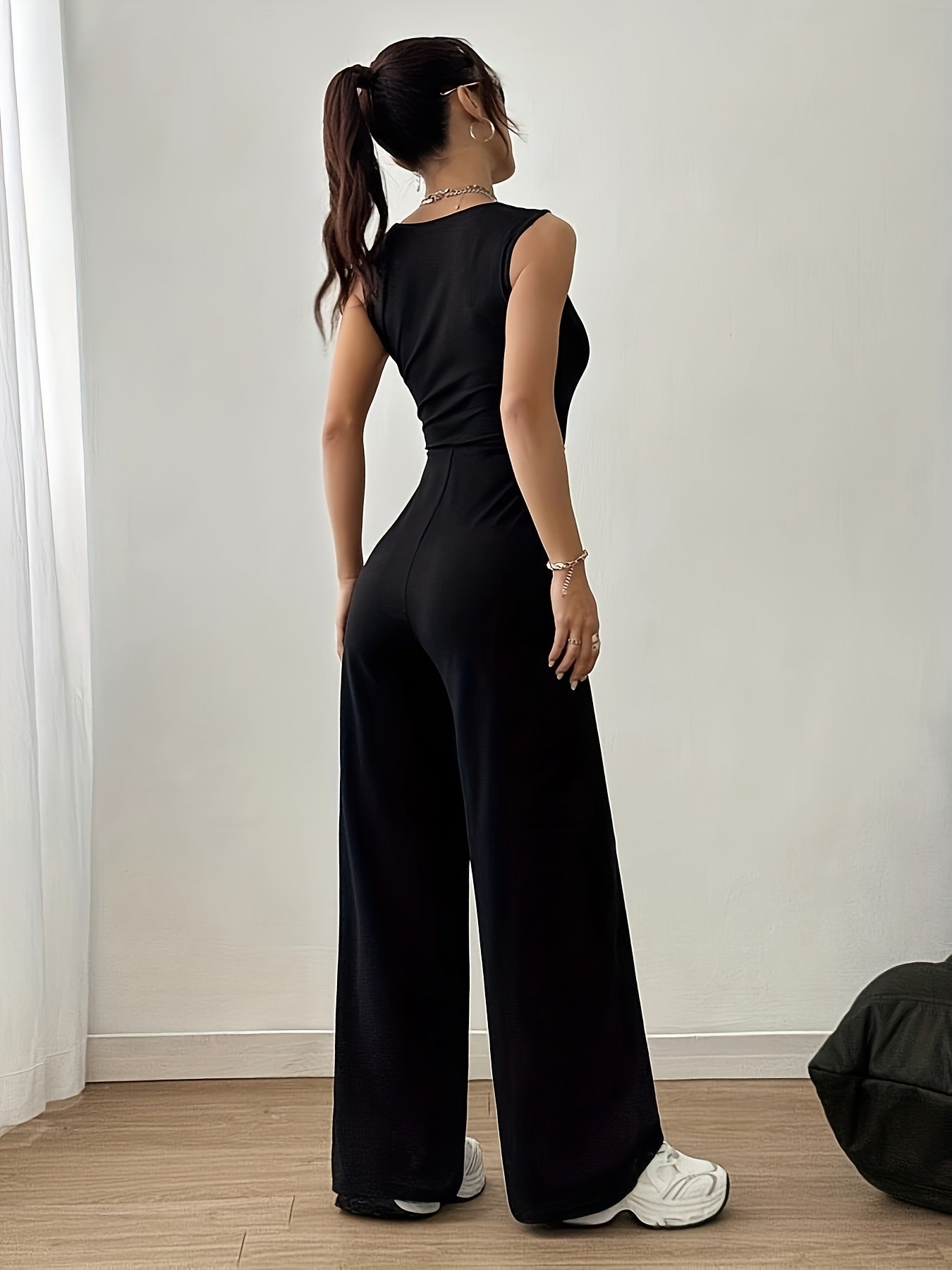 MARTA – Mono de tirantes con cuello cuadrado y pierna ancha