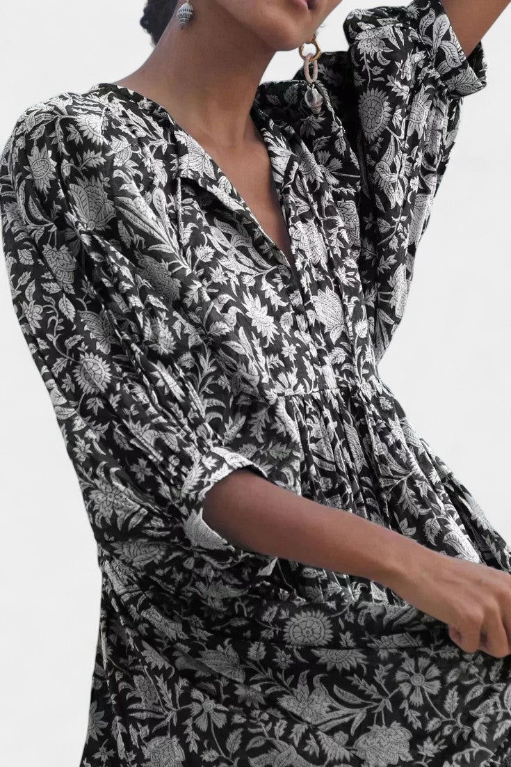 Encantador y sin esfuerzo—el Vestido Mini Daniela combina un estilo retro con una comodidad moderna. Con una silueta suelta, un atrevido estampado floral y mangas de longitud media, es perfecto para ocasiones de primavera y verano. Ya sea que te dirijas a una fiesta en el jardín o a una escapada de fin de semana, este vestido aporta una elegancia relajada a cualquier entorno.