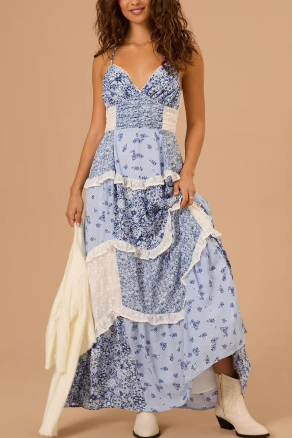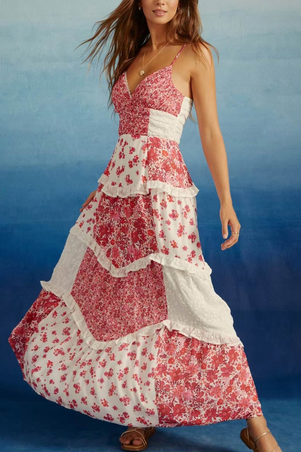 Luce un aire fresco y romántico con el Boho Floral , un vestido diseñado para realzar tu feminidad con su estampado floral, escote en V y delicados detalles de encaje en patchwork. Sus tirantes finos y el corte de estilo bohemio lo convierten en una prenda ligera y chic, perfecta para días soleados o escapadas de verano.