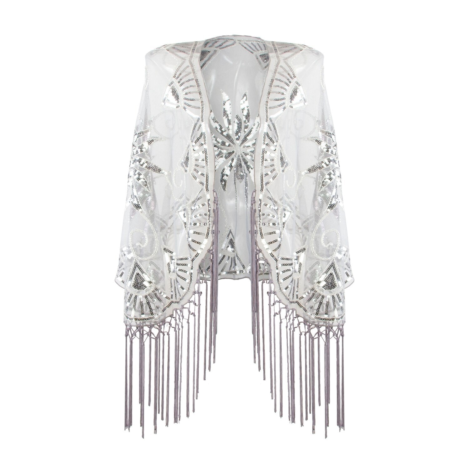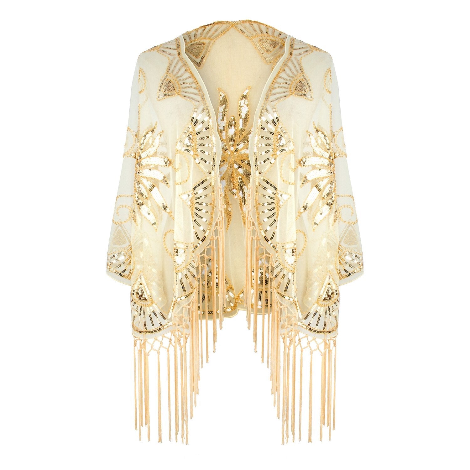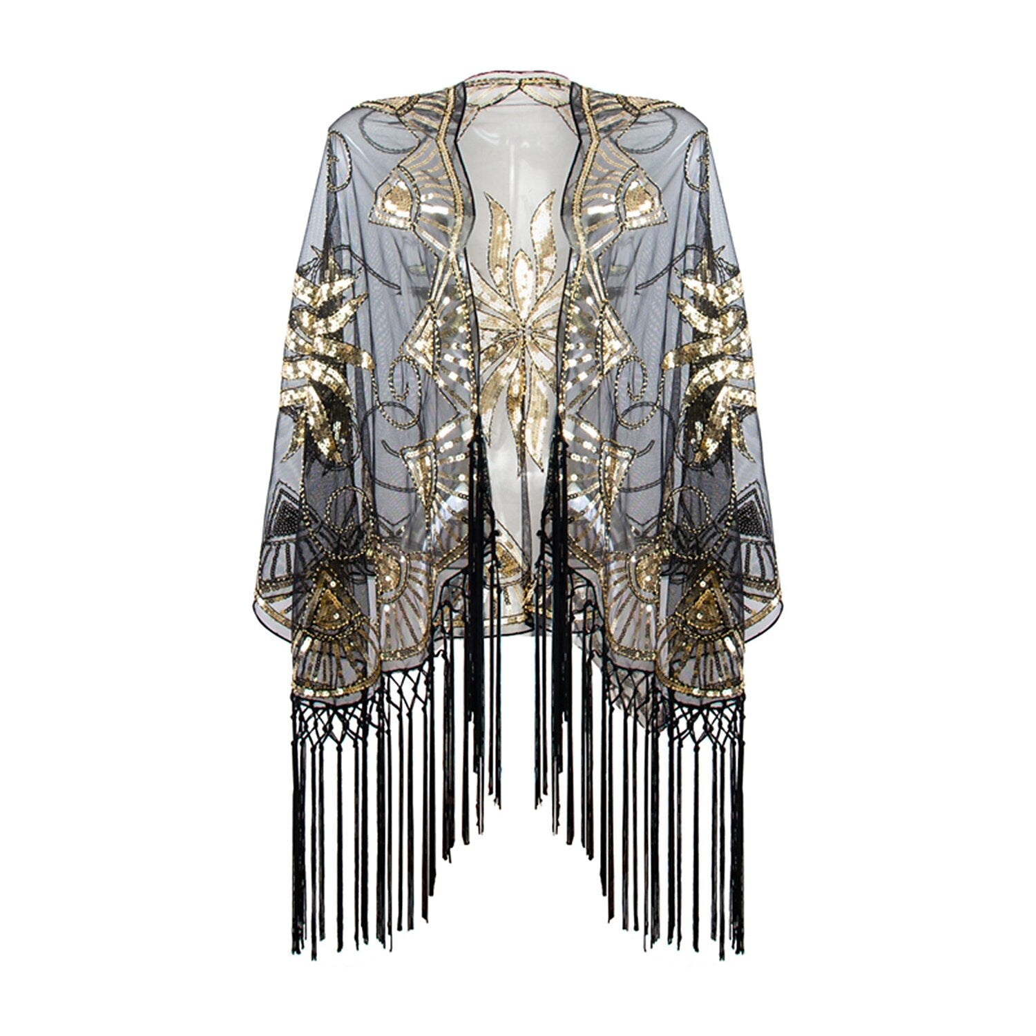 Capa de vestir vintage con flecos y lentejuelas para mujer